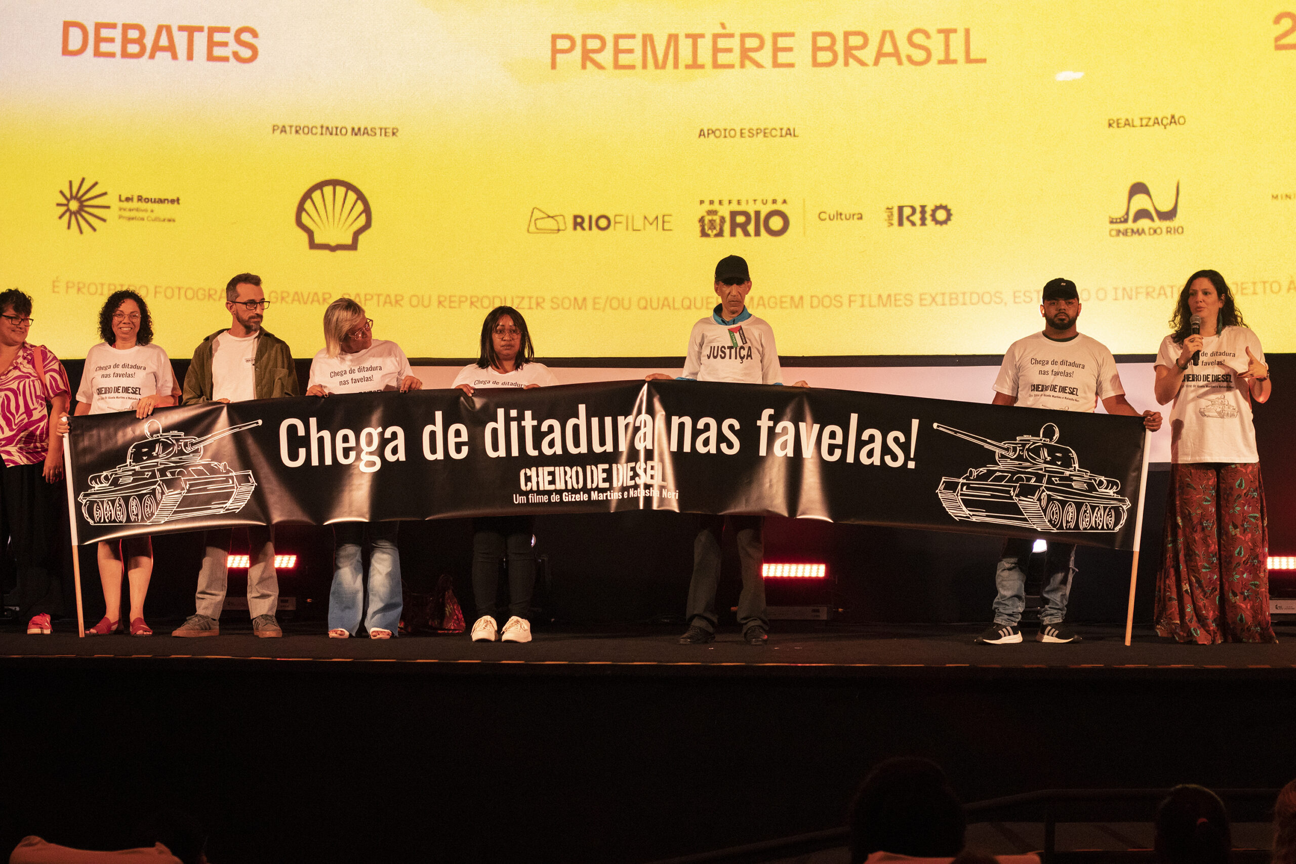No debate após a exibição do filme, as diretoras e personagens do documentário tiveram a oportunidade de falar, respondendo a perguntas da mediadora Cecília Oliveira. Quando questionada sobre como se pode mudar a visão da sociedade sobre a favela, Gizele Martins reforçou que as ações e omissões do Estado são o que leva à criminalização da favela; e o próprio Estado, representado pela polícia, apresenta-se coloca como solução.